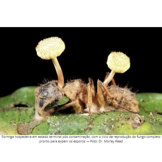 Uma das relações mais assustadoras do parasita acontece entre a espécie Ophiocordyceps unilateralis sensu lato e as formigas, caracterizada como contágio com “fungo-zumbi", a espécie específica que inspirou a história de “The Last of Us”.